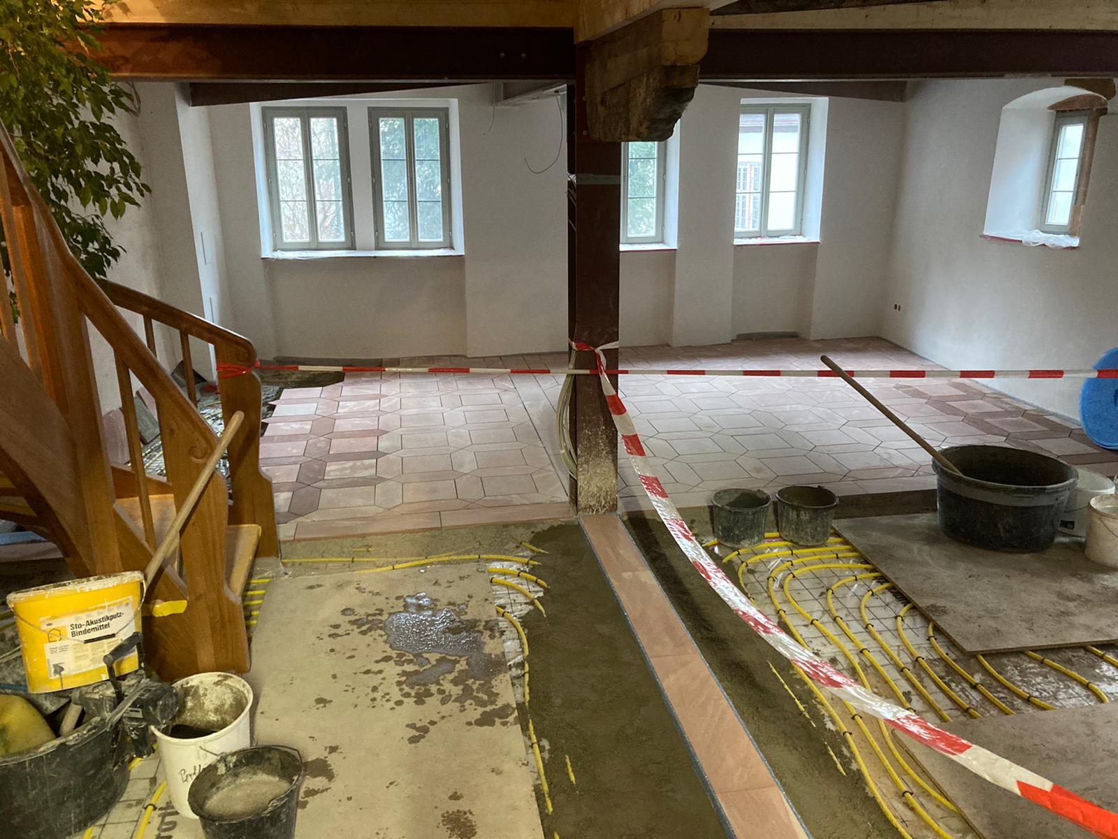 Umbau einer Scheune – BV: Düll, Am Schloss 3 in Würzburg – Bodenbelagsarbeiten
