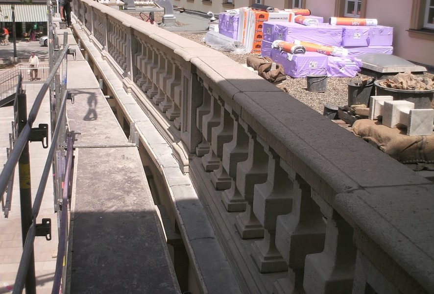 Schloss Veitshöchheim mit Hofgarten: Natursteinsanierung – Balustrade Sockel