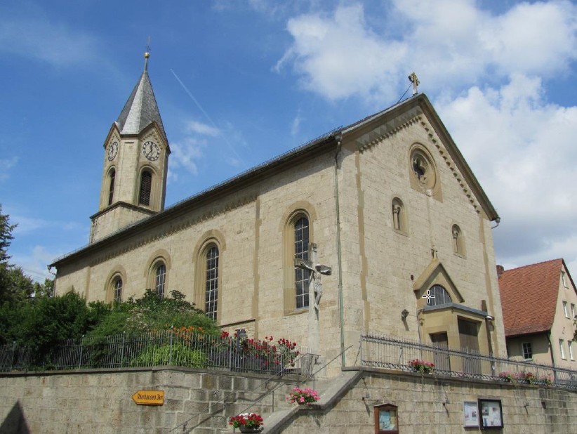 Kath. Pfarrkirche St. Markus, St.-Markus-Str.7 in 97922 Unterbalbach: Außenanlage – Steinmetzarbeiten